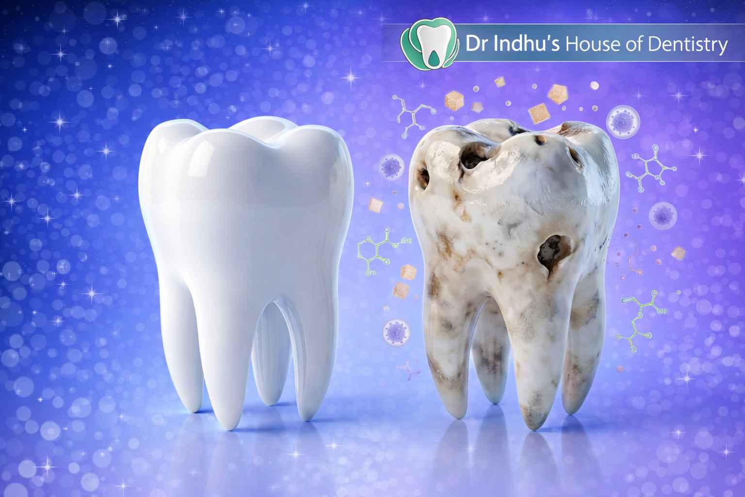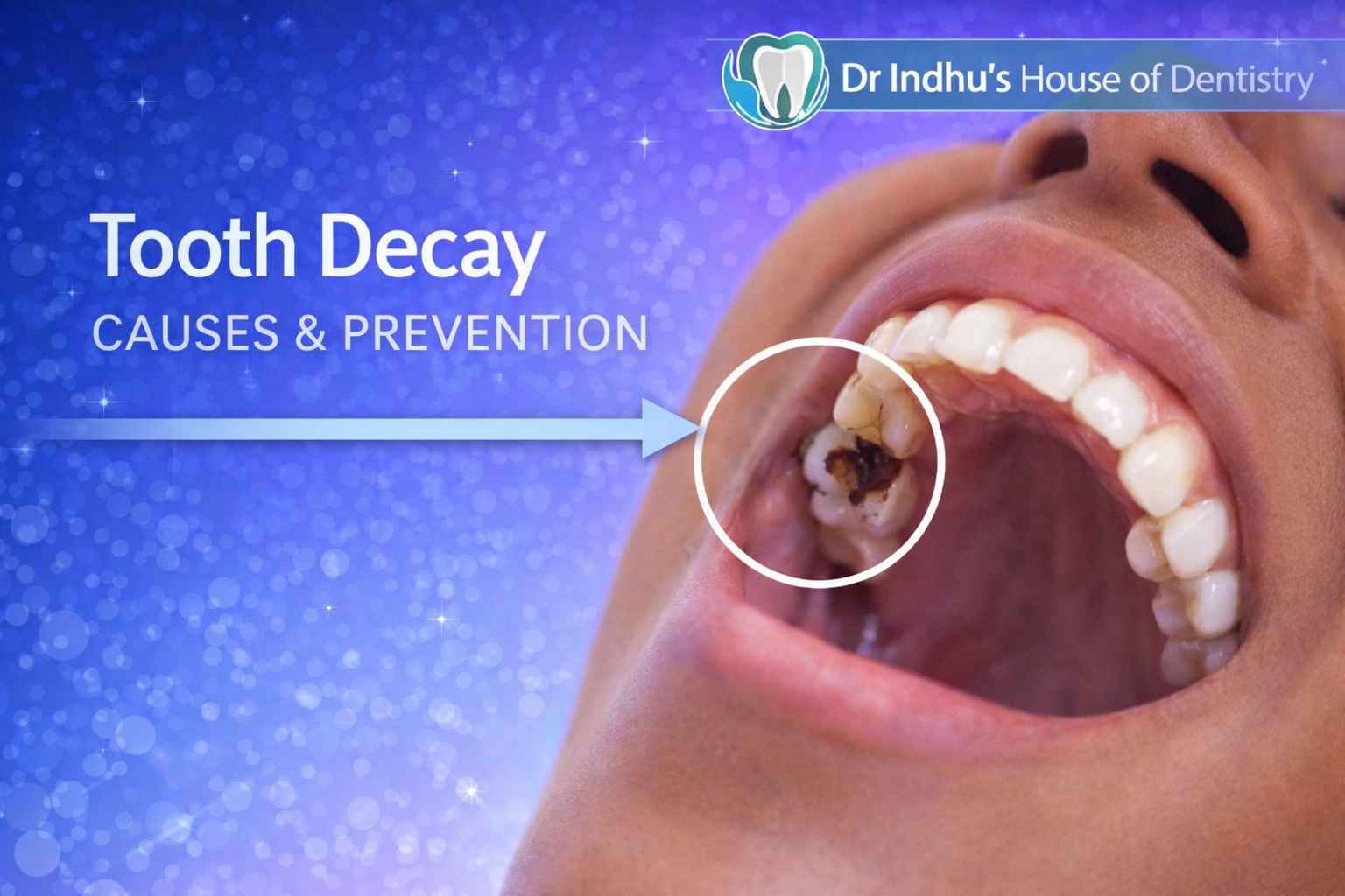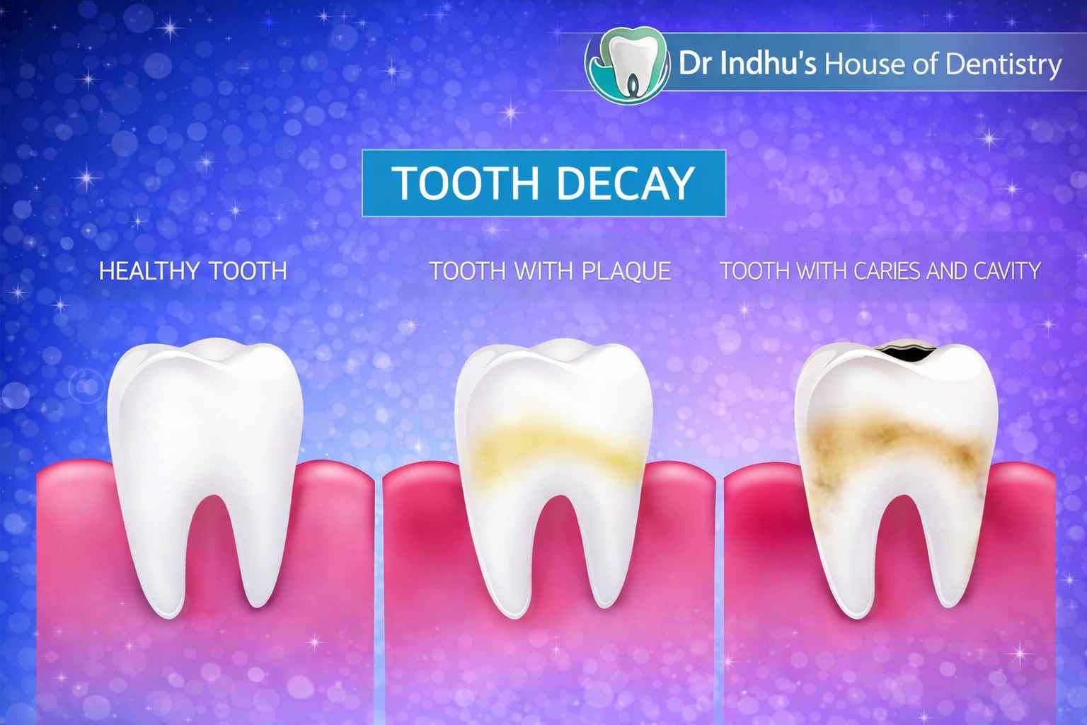 Tooth decay, also known as dental cavities, is one of the most common dental problems affecting people of all ages. It starts as minor damage to the tooth surface but can progress into serious pain and infection if not treated on time. At Dr. Indhu’s House of Dentistry & Aesthetics, Anna Nagar, we provide advanced and painless treatments to stop decay early and restore your healthy smile.