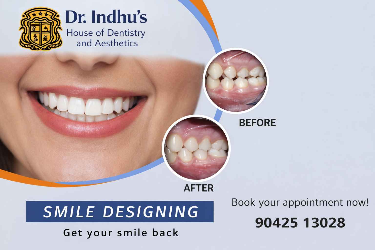 A beautiful smile can boost your confidence, improve your appearance, and leave a lasting impression. If you are unhappy with your teeth due to discoloration, gaps, uneven alignment, or damaged teeth, smile designing can help transform your smile. At Dr. Indhu’s House of Dentistry, we offer advanced smile designing in Anna Nagar, Chennai, using modern techniques and customized treatment plans to create natural, attractive smiles. Our approach focuses on enhancing both aesthetics and functionality to give you a confident and healthy smile.